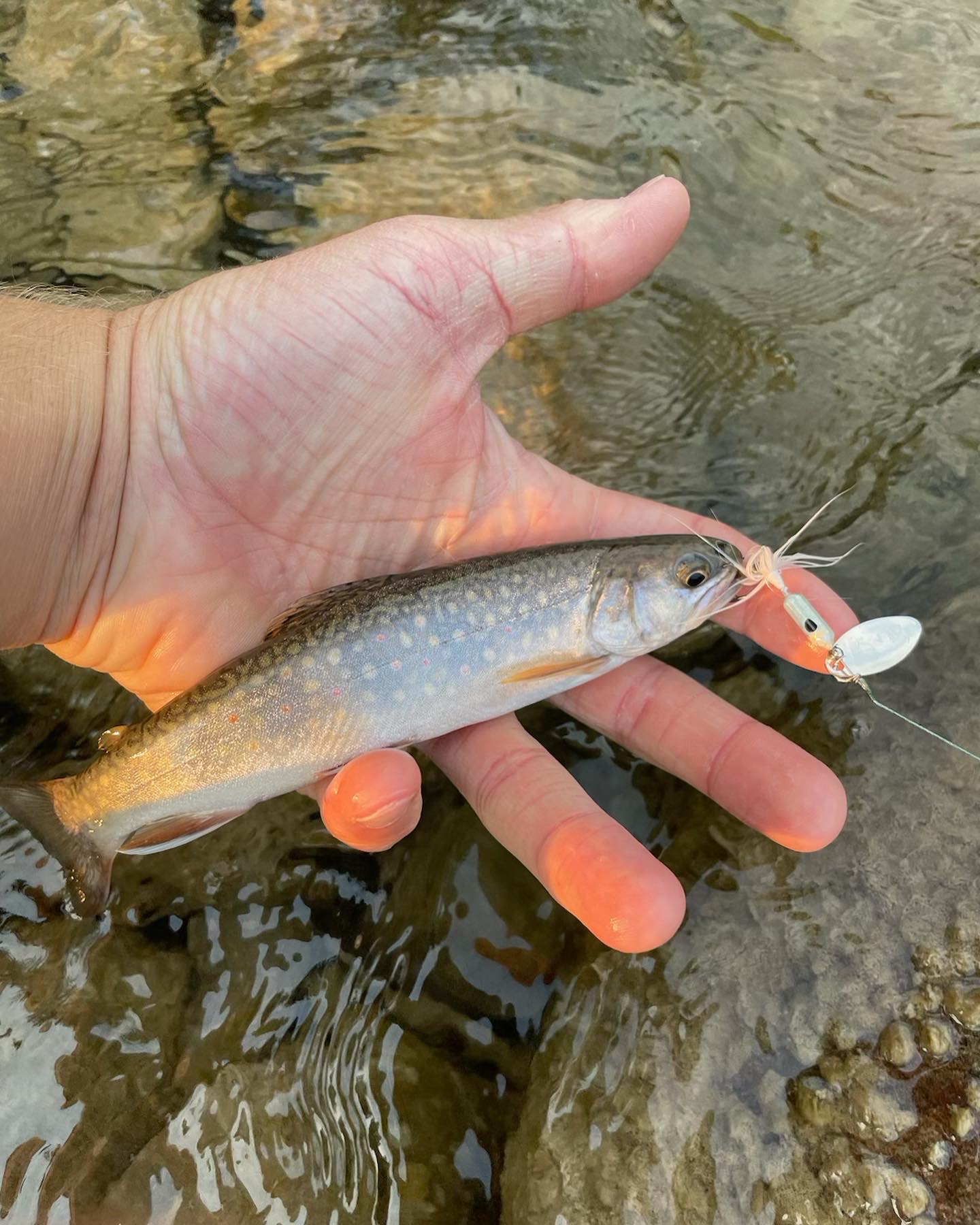 The best lures for trout fishing outside of flies like nymphs and dry flies are going to be spinnerbaits and roostertails. These baits emit a ton of vibration and flash and can often convince trout into biting in the river.