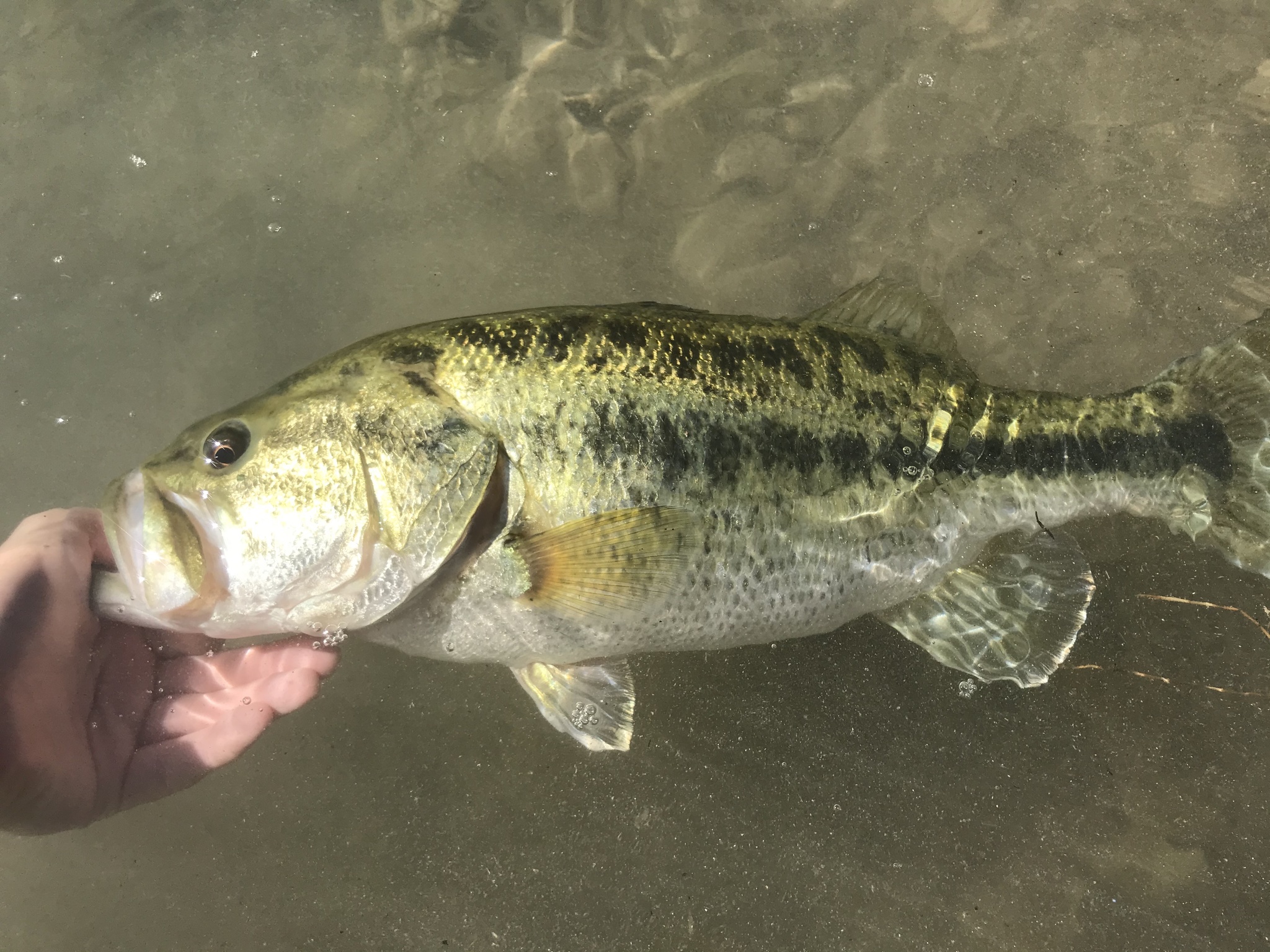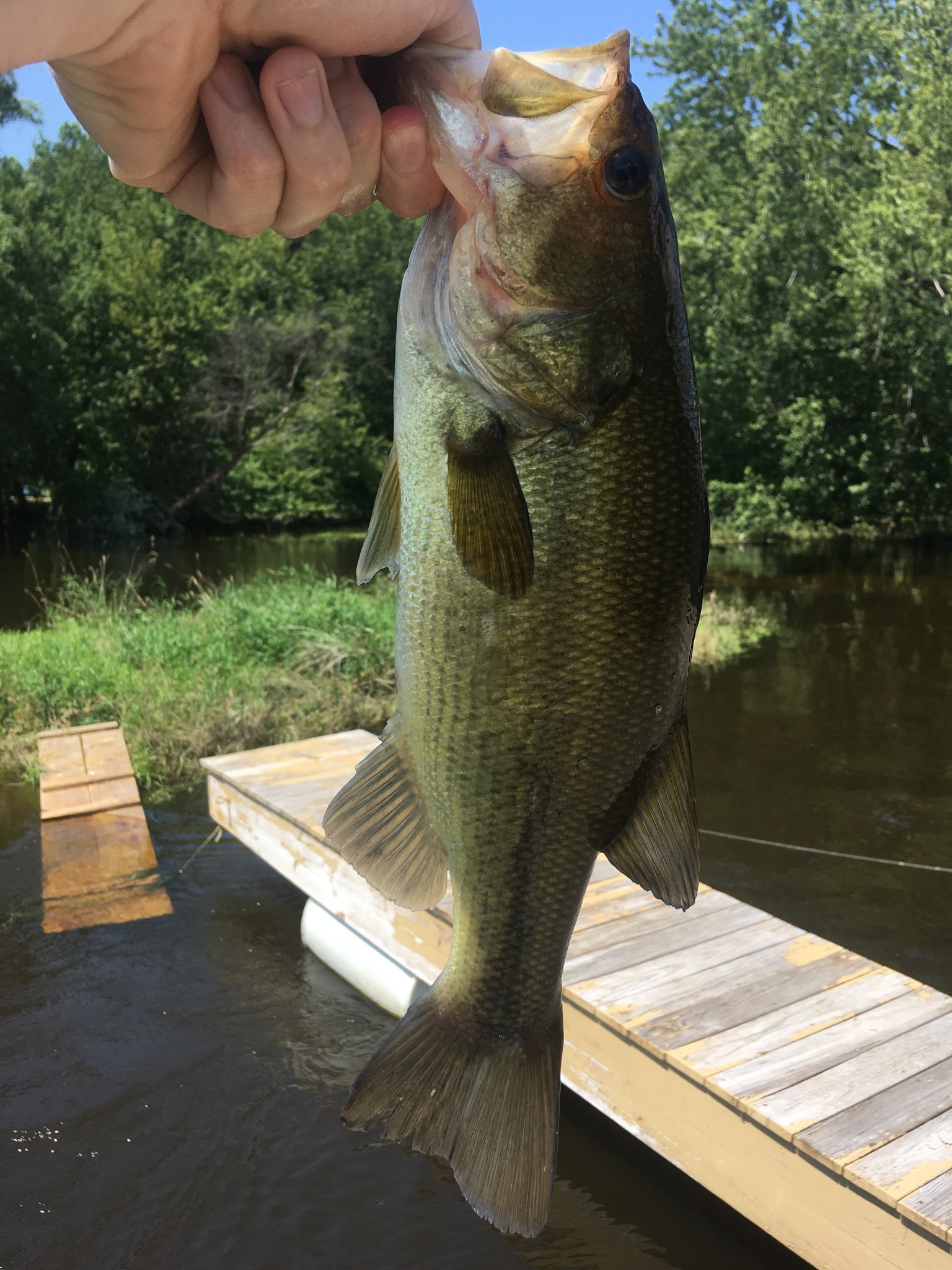 You’ll be able to recognize Largemouth Bass by their distinctive light to dark green coloring and darker blotches form in horizontal lines down both sides of the fish. They have a divided dorsal fin, with the anterior fin containing nine spines and the posterior fin containing approximately twelve rays.